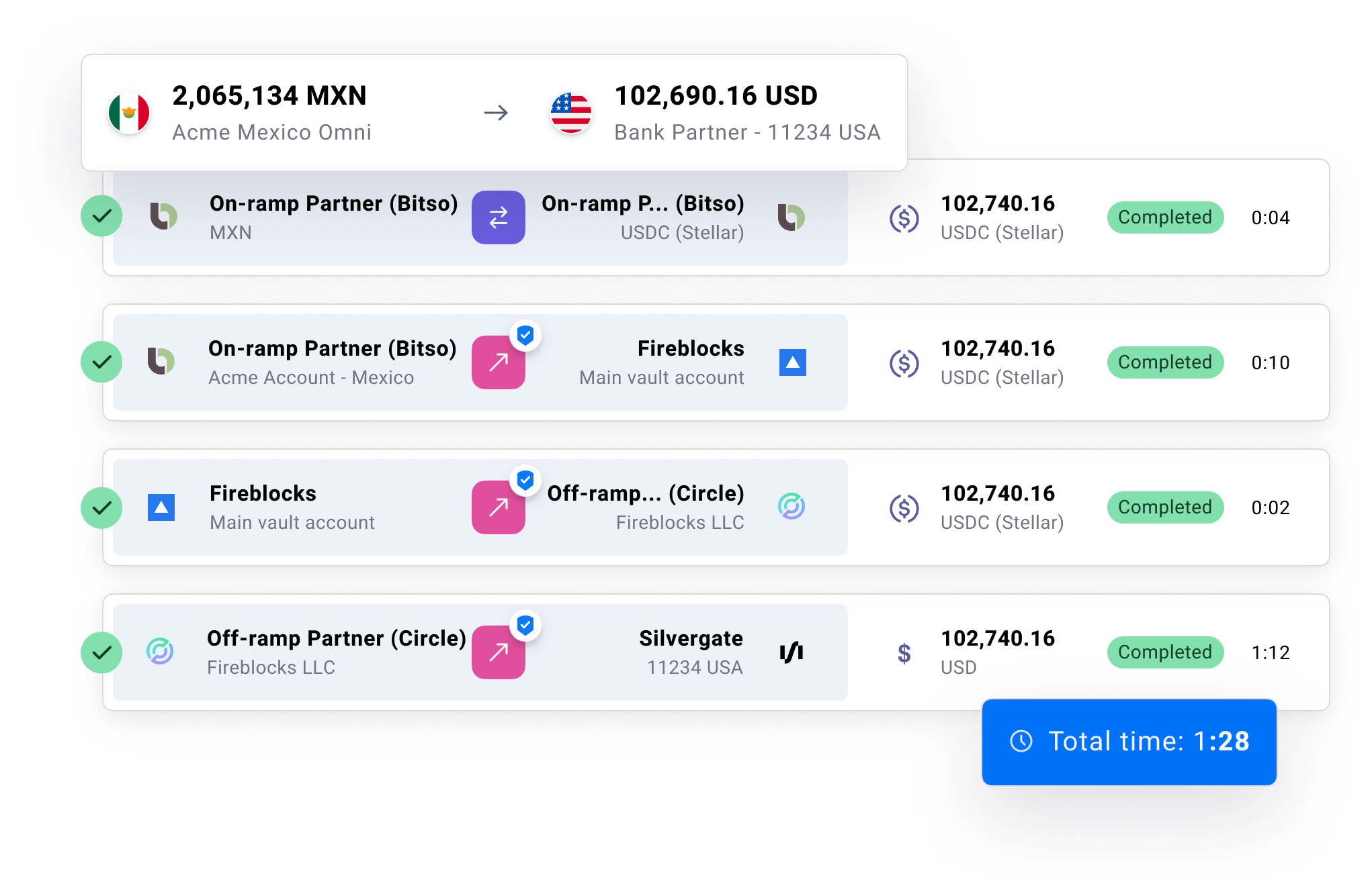 Unlike most solutions, you can build on any blockchain, support any asset or token, and in any geographic corridor.