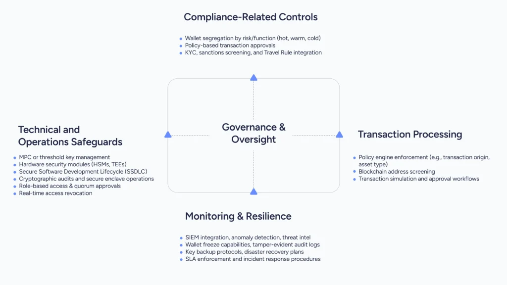 As supervisory expectations begin to formalize, institutions will be evaluated not only on policy alignment, but on the degree to which controls are embedded across custody operations. Risk management in this context is not abstract. It is defined through specific domains where auditability, governance, and technical enforcement must intersect: