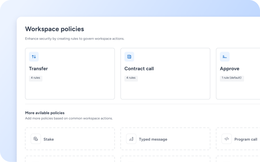 Policy controls are the foundation of secure digital asset operations. They define who can move assets, when, where, and how much—and keep teams aligned across treasury, trading, and product workflows. That’s why we rebuilt the Policy Engine from the ground up with more granular control, intuitive UX, and scale-ready logic. This is additive to all governance policies created and managed via Fireblocks’ API.